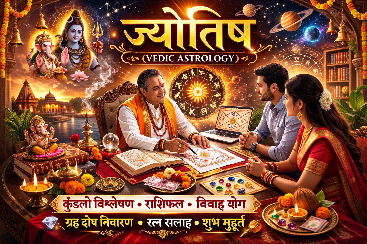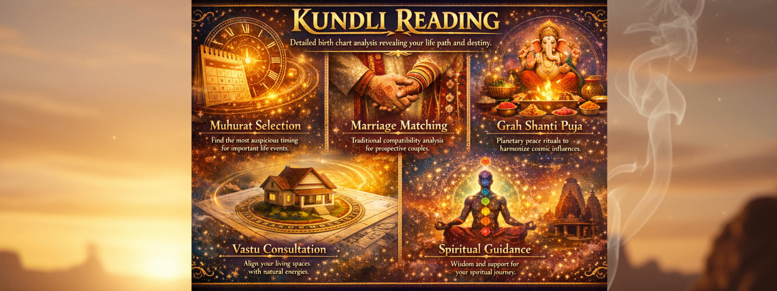 From birth to marriage, from new beginnings to spiritual guidance, we offer comprehensive astrological and ceremonial services rooted in ancient tradition.