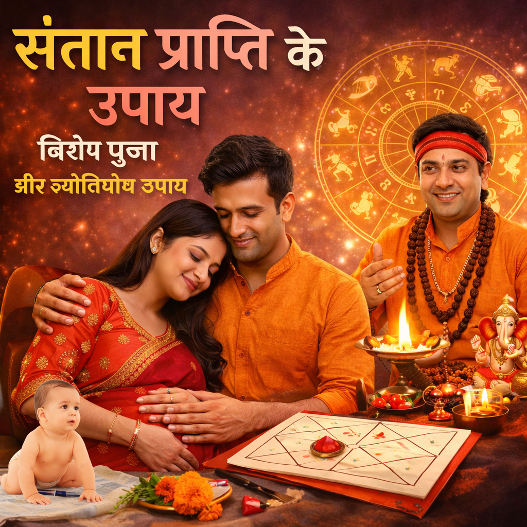 संतान प्राप्ति में आ रही बाधाओं को दूर करने के लिए जन्मकुंडली अनुसार विशेष पूजा, ज्योतिषीय उपाय और वैदिक मार्गदर्शन दिया जाता है।